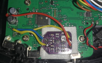 - Der OUT-Anschluss der Platine wird an den im Bild rechts befindlichen Lötpad des entfernten Widerstandes angeschlossen.