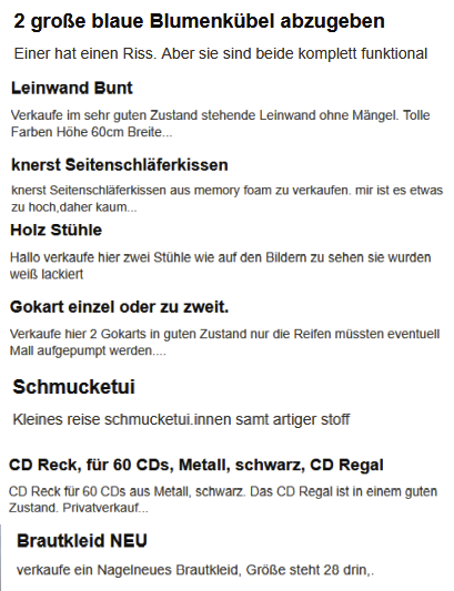 Und ernsthaft: Diese Anzeigen-Ausschnitte habe ich eben gerade im Vorbeigehen aus der aktuellen Auflistung bei Kleinanzeigen kopiert. Manche davon stehen direkt untereinander, so dass man gar nicht lange suchen muss.